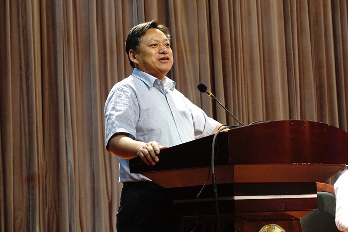 最后,辛忠教授代表学校全体教职工,向在座416位新同学表示热烈欢迎。进入大学后,改心态,以成熟的姿态面对人生;掌握方法,理智面对学习与生活中困难;创新思维,勇于直面生活的竞争;挖掘潜能,完善自我后步入社会。辛忠教授的发言诙谐幽默,引人深思。