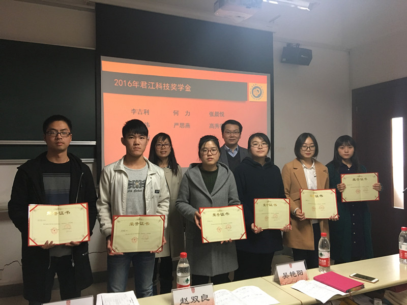2016年12月9日中午,“君江科技奖学金”颁奖仪式在华东理工大学奉贤校区B教109室举行。永利博彩