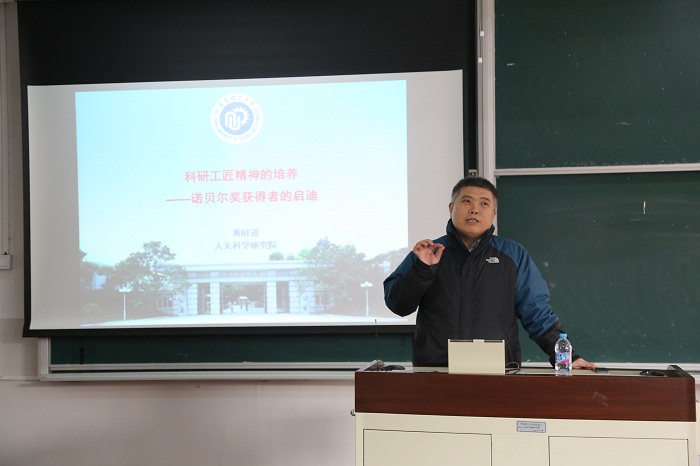 举办了“诺贝尔获得者需要 ‘工匠精神'”专题讲座。人文学院黄时进副教授为我院教职工深入解读了“工匠精神”。