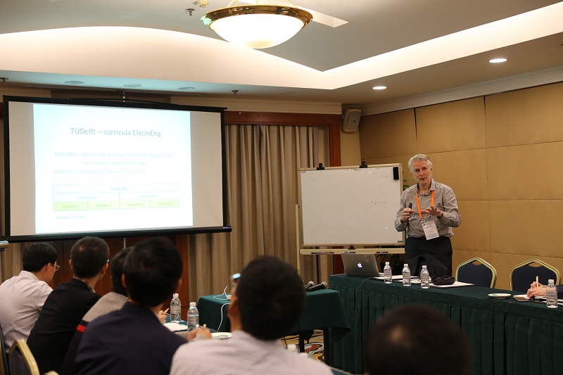 化学反应工程课程的教学理念和内容作了“Introduction to the CRE Course Teaching in ECUST”的专题报告,重点阐述了慕课建设、混合式教学(包括翻转课堂)、双语教学、ABET认证、课程建设等方面的内容。之后,国外专家对周兴贵教授提出的如何适应三个新趋势,即新概念反应器(面向过程强化)、新反应器性能(面向产品工程)、新学习方式(面向网络教学),进行了充分的讨论,并分别就各自学校的学制、课程分布情况、选课系统、化学反应工程课程教学情况、教学管理方式等方面作了专题报告和发言。国外专家充分肯定了永利博彩