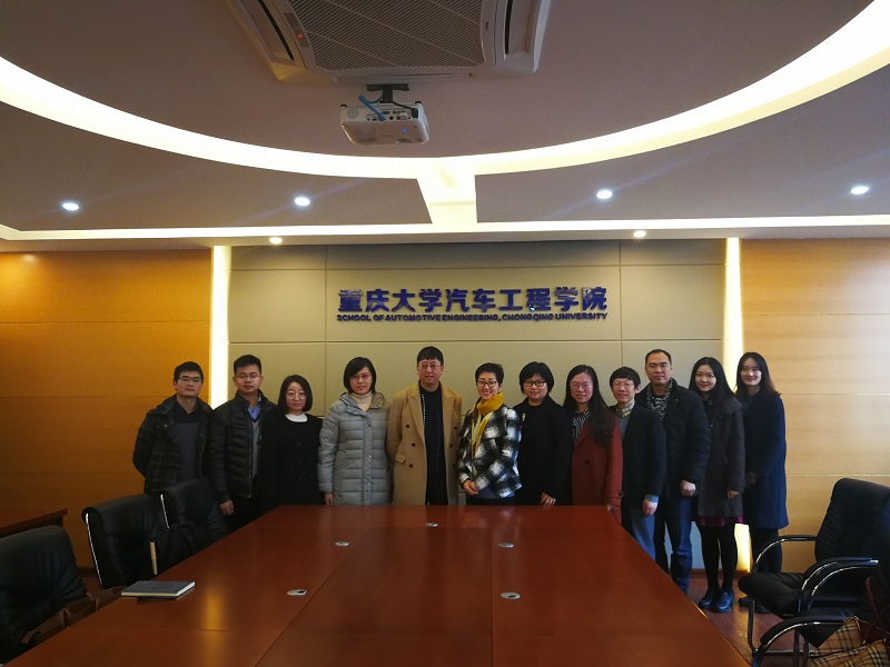 党委高艺霞带队一行九人来到重庆大学进行学习调研。重庆大学汽车工程学院党委副书记、纪委书记刁宇翔、团委书记陈才烈等人热情接待了到访的教师。