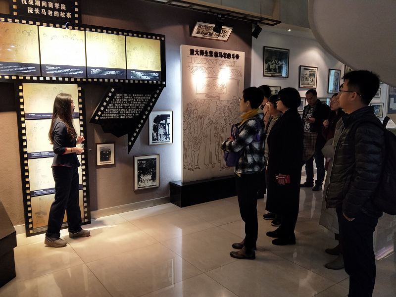 上午,一行人参观了重庆大学校史馆。校史馆依据重庆大学办学历程的阶段和特点划分为六个展厅,每个展厅主题鲜明,内容丰富,讲解员声情并茂地对每一张照片、每一个动人事迹进行详细解说,使教师们在短短二十分钟里对重庆大学建校八十多年来励精图强、艰苦奋斗的历史变革、综合发展、特色鲜明的专业设置和学科优势有了深刻地了解。同时加深了对学校人才培养观念和目标的理解,以及对学校历史、校训、校风等文化精神的领悟。