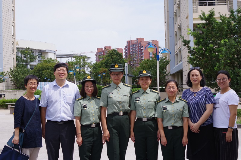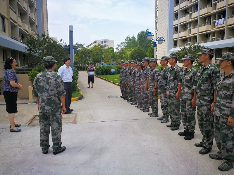 ,来到华东理工大学奉贤校区9-12围合,对2018年参加军训的一线教官和指导员们进行了亲切慰问。