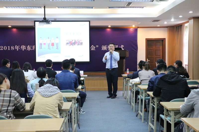 颁奖仪式结束后,高峰先生则分享自己的成长求职经历,详细介绍了润英联的基本情况、发展历程及永利博彩,同时作为华理毕业的学长表达了对华理的喜爱以及公司对华理学子的欢迎。
