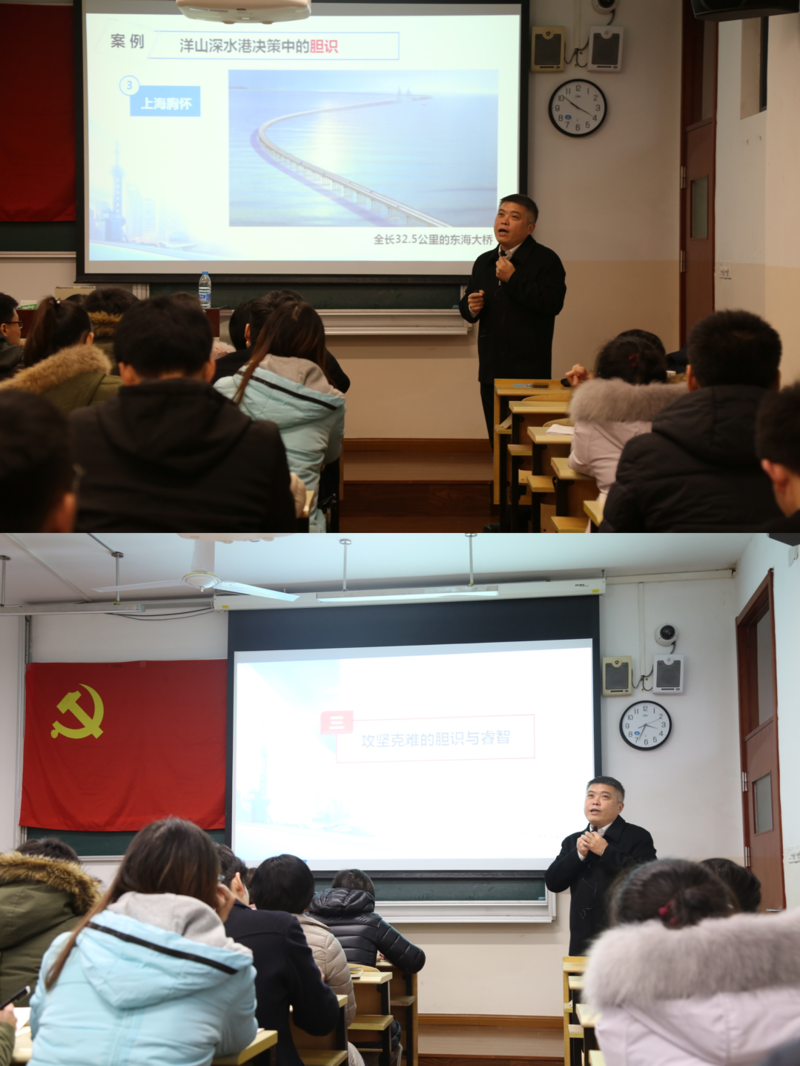 李涛立足上海改革开放的历史与变迁,以高速发展中的上海为主线,全面阐述了上海作为改革开放重要阵地所经历的艰难探索和伟大创造,围绕“重振大上海雄风的强烈忧患意识”、“敢为人先的创新精神”、“攻坚克难的胆识与睿智”以及总书记交给上海的新的重大任务等四个方面详细阐释了上海在改革开放中,经过几代人的拼搏逐渐体现出来的“使命、担当、睿智”的精神品质。从“久事专项”“浦东开发”,到洋山深水港建设等经典案例。李涛以点带面,娓娓道来,勾勒出我们脚下这座城市“海纳百川、追求卓越、开明睿智、大气谦和”的上海胸怀。李涛同时鼓励青年学子学习实践攻坚克难的胆识与锐意进取的气魄,启迪同学们站在中国特色社会主义的新方位新起点上,更加深刻地体悟“今天的上海很好,明天会更好!”的意义所在。
