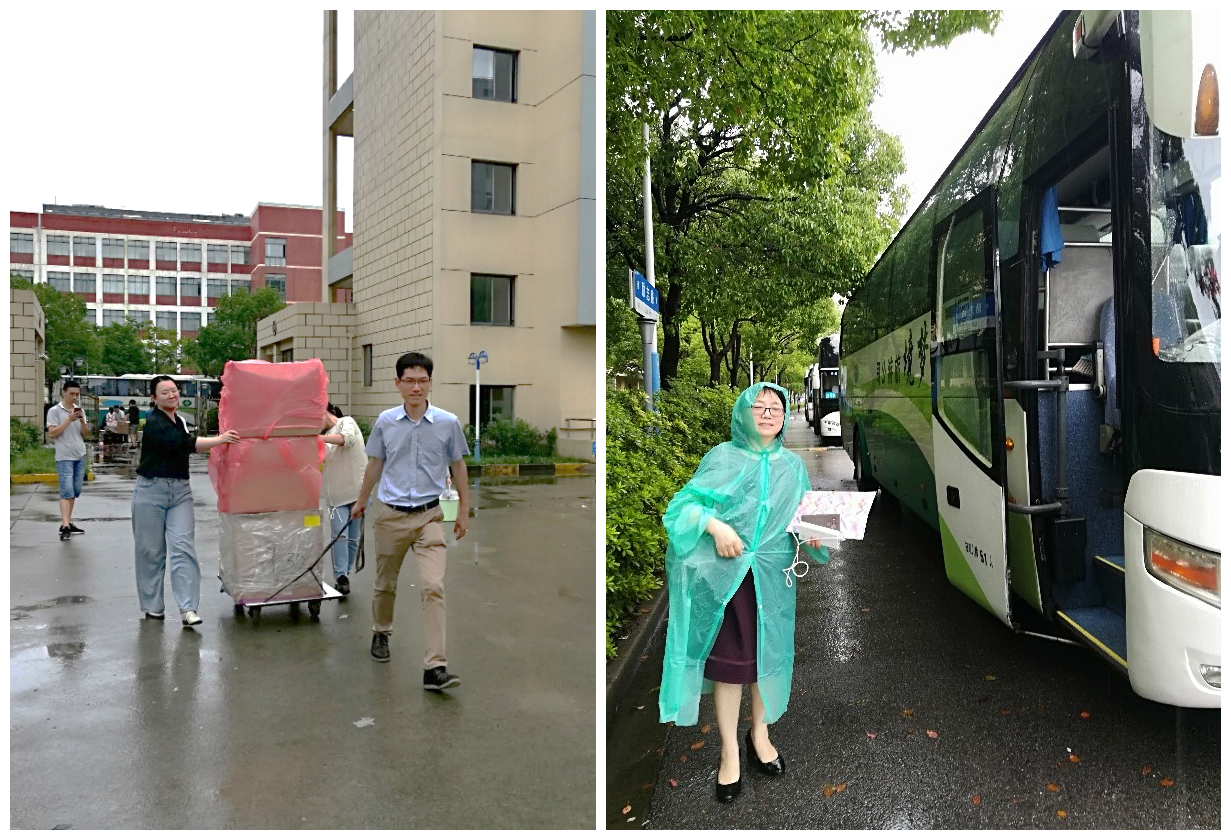 搬迁过程中,本科青年志愿者协会成员、研究生党支部成员组成的志愿者队伍,始终奔赴一线,他们主动扛起沉重的行李,不辞辛苦的奔波于寝室和堆放点之间。即使大雨倾盆,也浇不灭他们服务奉贤的热情。朱学栋等与志愿者亲切交谈,高度赞扬他们的志愿精神与服务热情,并为志愿者发放了降暑饮品。