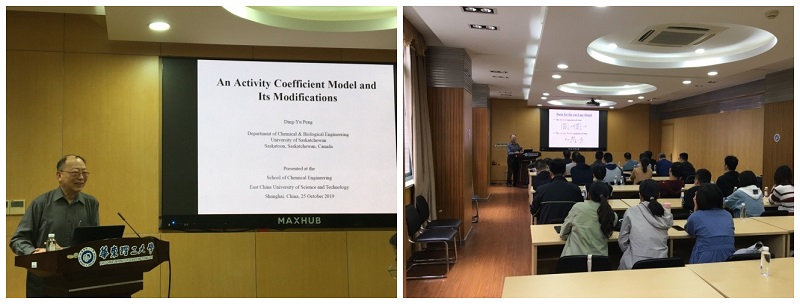 金秋10月,百桂飘香。正值华东理工大学建校67周年之际,10月25日上午,应化工热力学教研室的邀请,著名的国际化工热力学专家,Peng-Robinson状态方程的提出者,加拿大工程院院士,萨斯喀彻温大学(University of Saskatchewan)教授彭定宇先生在实验十六楼108室为永利博彩