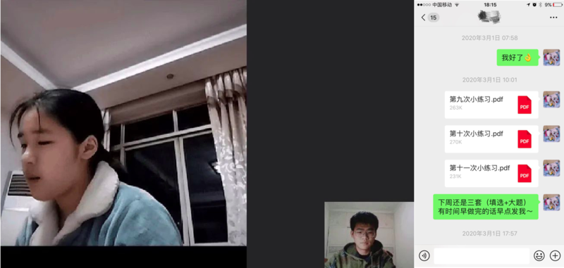 众多志愿者面对疫情当前并没有停止服务奉献的脚步,而是创新志愿形式,依托网络展开温暖人心的线上志愿服务活动。化工176钱逸玲同学通过钉钉直播和微信答疑的方式,为一个高三的学生提供数学科目的系统化辅导,目前已连续辅导7次共12小时。针对学生的实际情况,钱逸玲找出了自己高中时期的数学笔记,每天扫描一部分后分享给她,并且还精心挑选了部分历年上海高三一模二模试卷的题目帮助她巩固练习。永利博彩