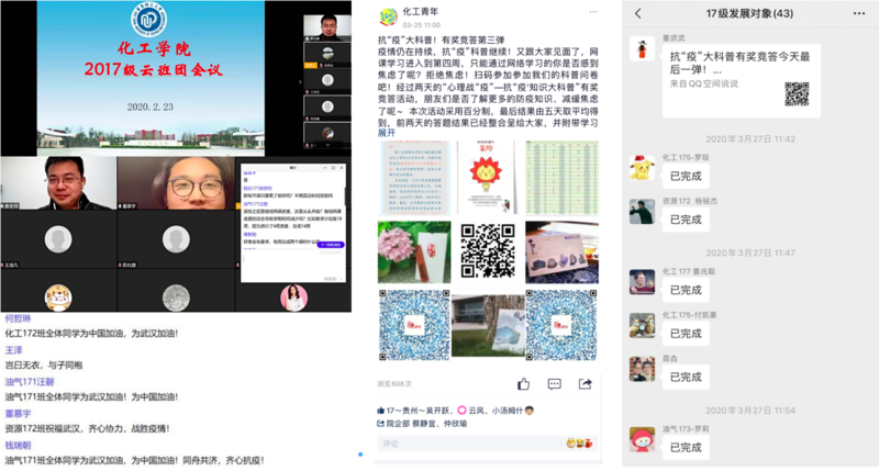 “云”学习,直播分享加油站。由于防疫期间业延期开学,学生居住地点分散、师资人员不集中,无法开展传统课堂式线下活动,学院师生化身“主播”,相聚“云端”,利用“互联网+”教育模式,开展线上主题活动,让疫情期间思政教育落到实处、做出实效。依托化工电视台品牌平台,在线支撑专业学习和主题教育的设想,仅用3天时间,迅速完成bilibili平台“化工电视台”直播系统测试,以及直播栏目的内容筹备与优化。