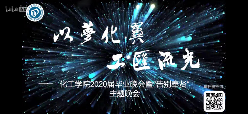 2020届毕业晚会在哔哩哔哩直播中拉开帷幕。毕业生们拍摄的毕业主题歌曲微电影,重温四年前写给自己的信等环节,为毕业生送上暖暖的祝福,激发学生爱校爱院的强烈共鸣。精心准备的13个节目将晚会推向高潮,1.2万余名观众在线上共同观看了此次晚会,节目本身以及千余条弹幕纷纷表达了同学们对华理的深厚情感,祝愿母校越来越好。