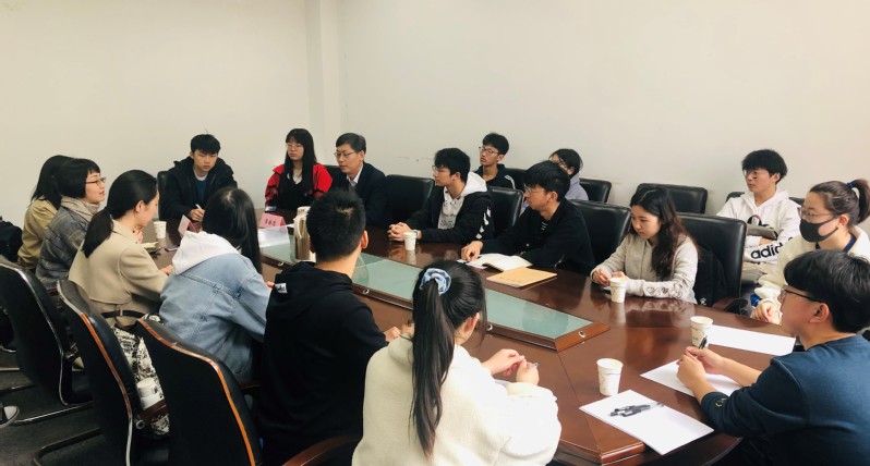 院长李春忠在奉贤校区与学生代表座谈交流,党委副书记高艺霞、院长助理吴艳阳、辅导员田梦及2020级20余名学生代表参加了座谈。