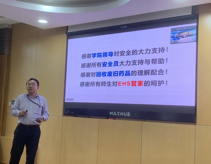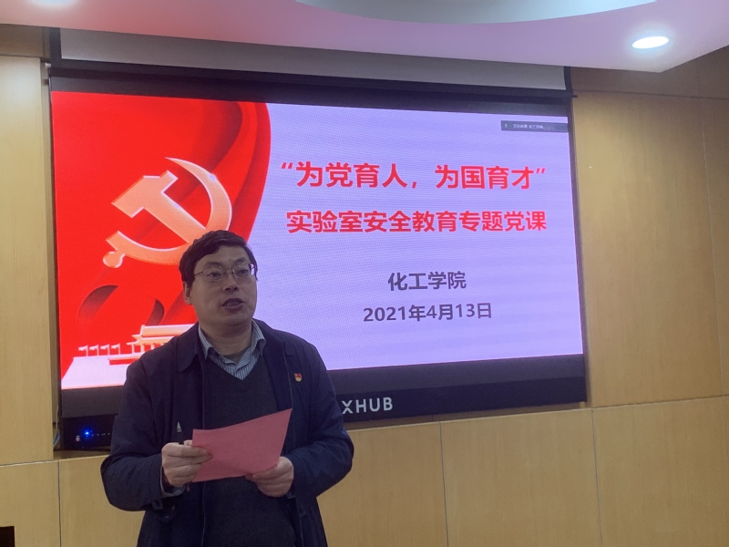 发生的实验室安全事故,以事故案例开展警示教育,为参会师生党员敲响安全警钟。针对化学化工学科气瓶和溶剂需求量大、分布区域广等特点,他主张依托HSE管家服务系统,通过开展危化品分类存储、建立安全培训矩阵、加强个人防护等项目守护师生健康安全,筑牢实验室安全屏障,切实提升实验室安全管理水平。