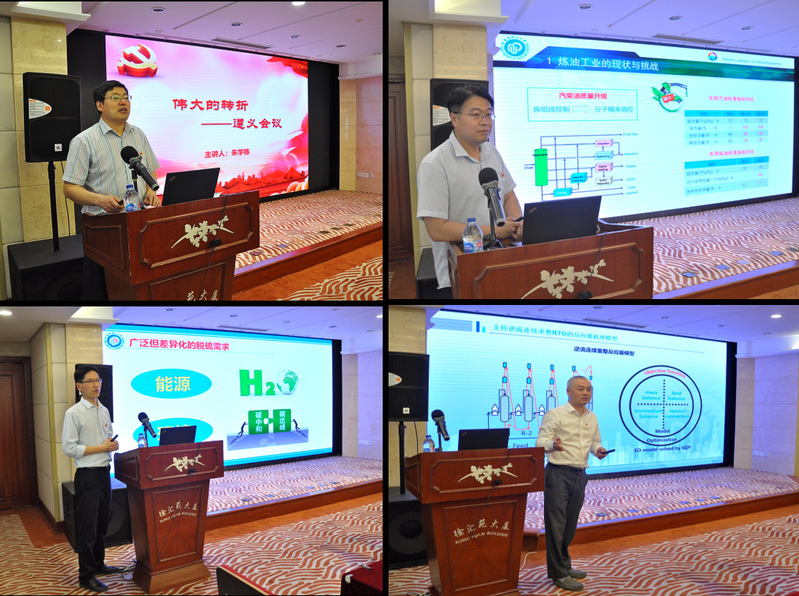 随后,朱学栋以“伟大的转折——遵义会议”为题开启了共建后的第一次共享党课,重点再现中国工农红军长征史的光辉历程。他指出,坚定信念、实事求是、独立自主、敢闯新路、民主团结的遵义会议精神,必将成为深入推进爱国主义教育和革命传统教育、鼓舞全国人民实现中华民族伟大复兴中国梦的巨大动力。刘纪昌、孙辉、江洪波分别以“基于分子炼油的过程模拟与系统优化”“基于多孔材料的有机硫化物吸附脱除与构效调控”“复杂反应体系动力学研究与炼油过程模拟优化”为题与企业专业技术人员进行了深入交流。