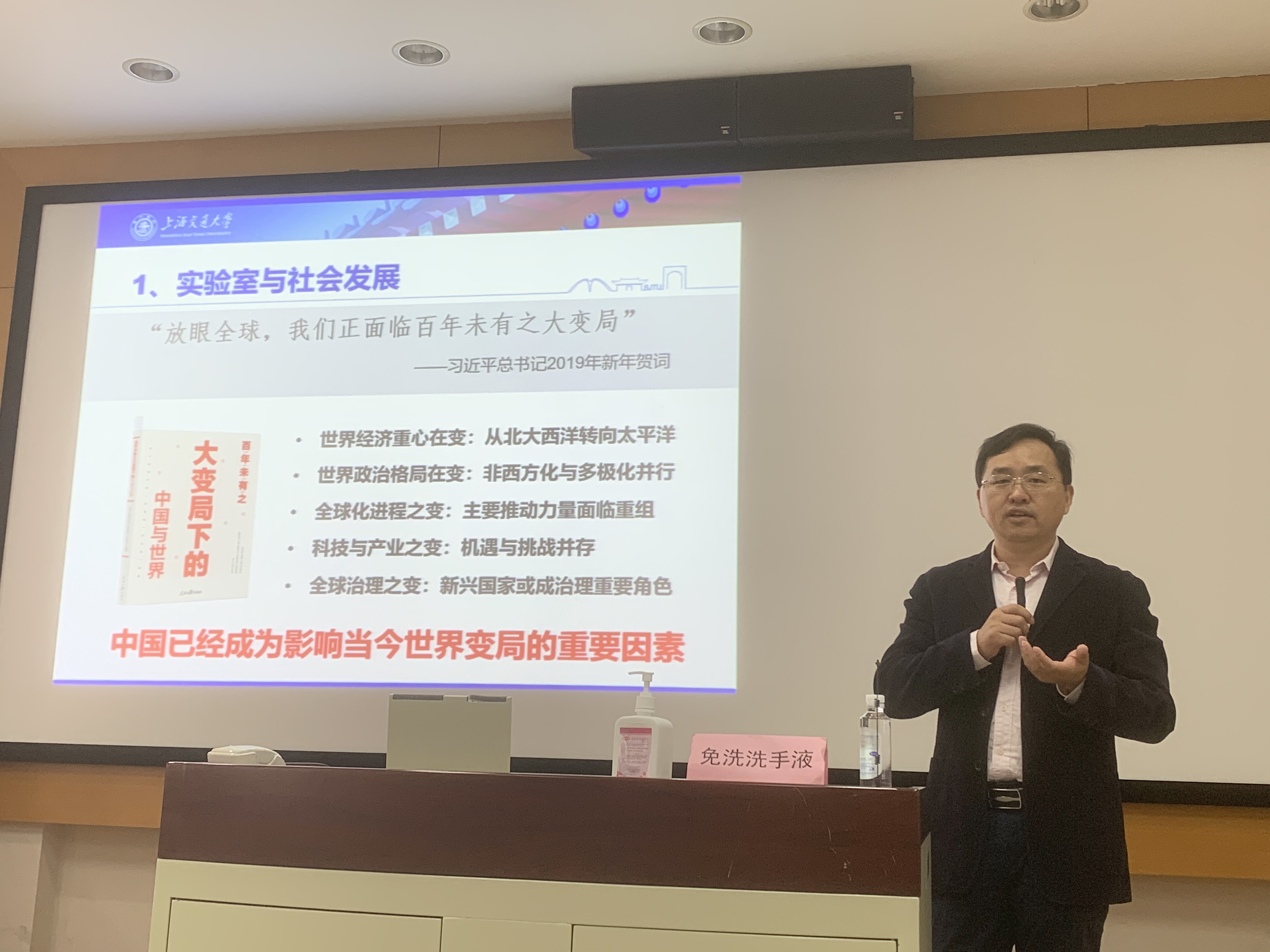 研究生安全培训大会在徐汇校区八教101多媒体教室举行。本次大会特别邀请到了上海交通大学实验室安全与环保中心彭华松副主任。校安全环保办公室主任徐宏勇、李晨晨,永利博彩