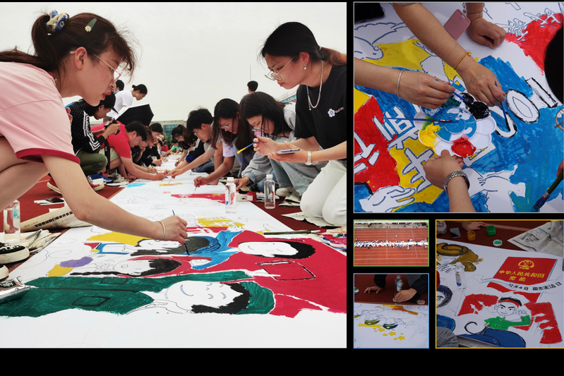 党委书记朱学栋和青年教师、学生党员为代表的老中青三代师生齐聚奉贤校区田径场,挥毫泼墨,共同谱就出一幅璀璨“红”图。参与活动的还有学院党委副书记高艺霞、段学志、吴艳阳、张相洋和各年级辅导员及百余名学生代表。